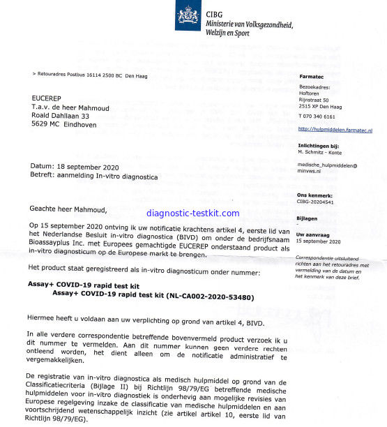 ในฐานะที่เป็นผู้ผลิตมืออาชีพของชุดทดสอบการวินิจฉัยในหลอดทดลองเราปฏิบัติตาม QSR อย่างเคร่งครัด ( ระเบียบระบบคุณภาพ )-TUV ISO 13485 จากเยอรมนีและ FDA จากสหรัฐอเมริกา, ผลิตภัณฑ์ทั้งหมดมีการระบุไว้ใน GMP ( แนวทางปฏิบัติที่ดีในการผลิต) เงื่อนไข.วัตถุดิบทางชีวเคมีของเราส่วนใหญ่ (Conjugation Antibody / Antigen ฯลฯ ) นำเข้าจากห้องปฏิบัติการผู้เชี่ยวชาญของเรา (Bioassayplus Inc.) ในแคนาดามีทีมงาน R&D มืออาชีพเพื่อให้แน่ใจว่าแหล่งที่มาของวัตถุดิบมีคุณสมบัติเหมาะสมเราสัญญาว่าผลิตภัณฑ์ทั้งหมดของเราได้รับการรับรองโดยองค์กรรับรองมาตรฐานสากลที่มีชื่อเสียงระดับโลก